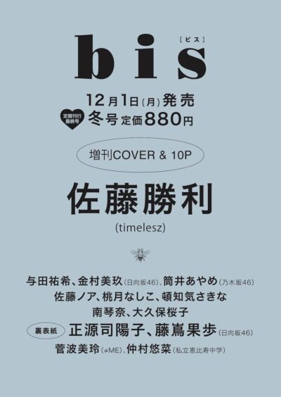 【12/1発売】「bis 2026年 冬号 増刊」表紙:佐藤勝利 (timelesz)