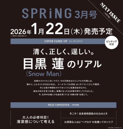 【1/22発売】「SPRiNG 2026年 3月号」表紙:目黒蓮(Snow Man)