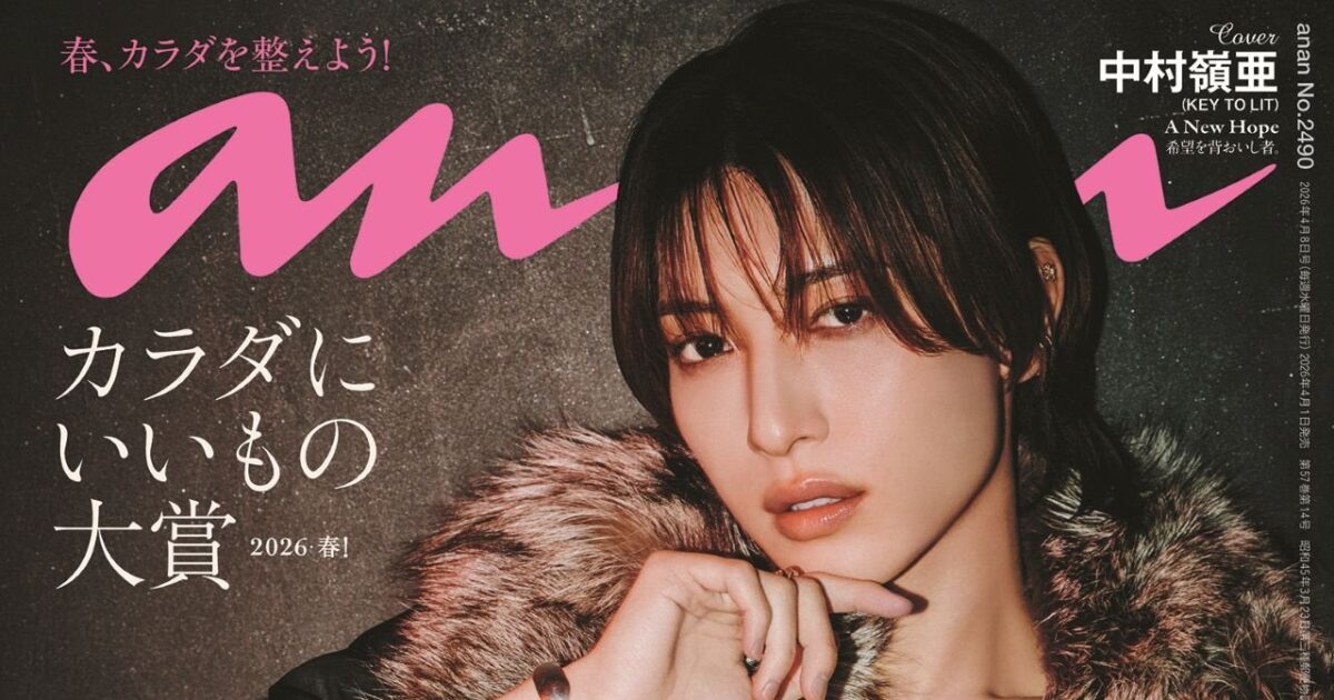 amazon.co.jp 【4/1発売】「anan No.2490」表紙:中村嶺亜(KEY TO LIT) ポストする シェアする LINEで送る 更新日 : 2026年4月1日(水) anan マガジンハウス 週刊(毎週水曜日) 公式サイト 公式SNS ▼バックナンバー検索 Amazon 楽天ブックス 楽天市場 anan(アンアン) 2026年 4/8号 No.2490表紙中村嶺亜(KEY TO LIT)特集カラダにいいもの大賞 2026 春!掲載佐野晶哉(Aぇ! group) Amazonで見る 紙版を購入 販売期間や在庫状況により、リンク先のショップで購入できない場合があります。ご了承ください。