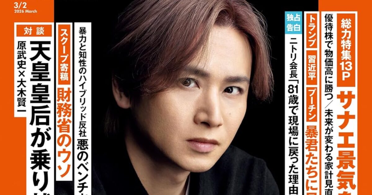amazon.co.jp 【2/16発売】「週刊現代 2026年 3/2号」表紙:堂本光一 ポストする シェアする LINEで送る 更新日 : 2026年2月16日(月) 週刊現代 講談社 隔週刊(隔週月曜日) 公式サイト 公式SNS ▼バックナンバー検索 Amazon 楽天ブックス 楽天市場 週刊現代 2026年 3/2号表紙堂本光一(DOMOTO) Amazonで見るKindle版(電子書籍)楽天ブックスで見る楽天Kobo版(電子書籍)楽天市場で見る 紙版を購入 電子書籍版を購入 販売期間や在庫状況により、リンク先のショップで購入できない場合があります。ご了承ください。