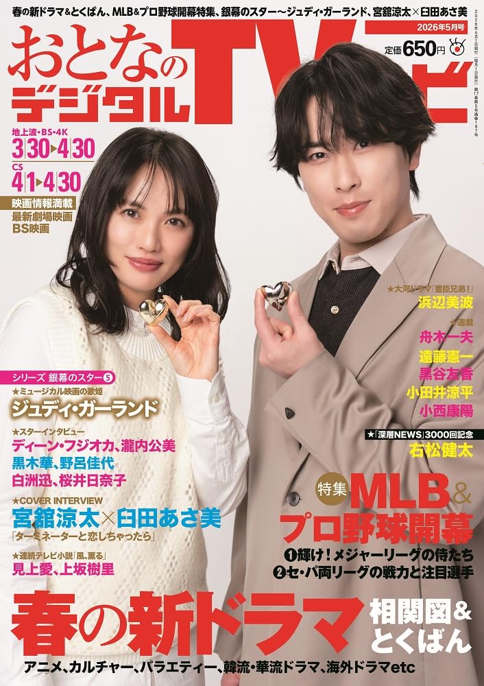 amazon.co.jp 【3/24発売】「おとなのデジタルTVナビ 2026年 5月号」表紙:宮舘涼太(Snow Man) × 臼田あさ美 ポストする シェアする LINEで送る 更新日 : 2026年3月24日(火) おとなのデジタルTVナビ 産経新聞出版 月刊(毎月24日) 公式サイト 公式SNS ▼バックナンバー検索 Amazon 楽天ブックス 楽天市場 おとなのデジタルTVナビ 2026年 5月号表紙宮舘涼太(Snow Man) × 臼田あさ美ドラマ『ターミネーターと恋しちゃったら』 Amazonで見る楽天ブックスで見る楽天市場で見る 紙版を購入 販売期間や在庫状況により、リンク先のショップで購入できない場合があります。ご了承ください。