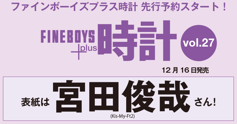 amazon.co.jp 【12/16発売】「FINEBOYS+plus 時計 vol.27」表紙:宮田俊哉(Kis-My-Ft2) ポストする シェアする LINEで送る 更新日 : 2025年12月16日(火) FINEBOYS+plus 時計 マガジンハウス/日之出出版 - 公式サイト 公式SNS ▼バックナンバー Amazonで検索 楽天ブックスで検索 楽天市場で検索 FINEBOYS+plus 時計 vol.27[HINODE MOOK 785]表紙宮田俊哉(Kis-My-Ft2) Amazonで見る楽天ブックスで見る楽天市場で見る 紙版を購入 販売期間や在庫状況により、リンク先のショップで購入できない場合があります。ご了承ください。