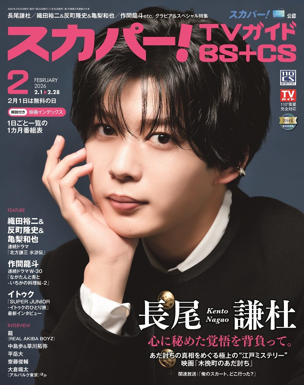 amazon.co.jp 【1/26発売】「スカパー!TVガイドBS+CS 2026年 2月号」表紙:長尾謙杜(なにわ男子) ポストする シェアする LINEで送る 更新日 : 2026年1月26日(月) スカパー!TVガイドBS+CS 東京ニュース通信社 月刊(毎月24日) 公式サイト 公式SNS ▼バックナンバー検索 Amazon 楽天ブックス 楽天市場 スカパー!TVガイドBS+CS 2026年 2月号表紙・特集長尾謙杜(なにわ男子)映画「木挽町のあだ討ち」2/27公開インタビュー作間龍斗(ACEes)ドラマ「ながたんと青と」第2弾ほか Amazonで見る楽天ブックスで見る楽天市場で見る 紙版を購入 販売期間や在庫状況により、リンク先のショップで購入できない場合があります。ご了承ください。
